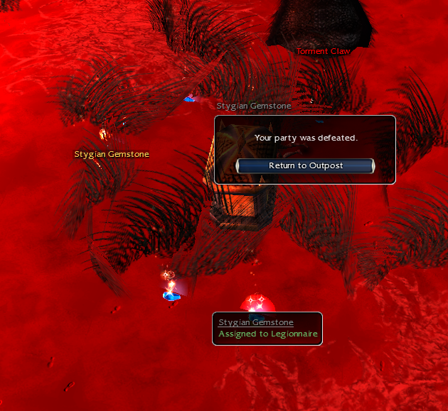 Duo DoA: Finish gloom as cons run out. my partner clicks on chest, dies b4 he can pick all gems then goes to town so I can grab his drops. About 60sec later (I was running in from City chest) I hit a Legionnaire as a small distraction so I can pick up gems in peace, this is something that I've done lots in many places. Legionnaire proceeds to die to 100+ soul tormentors on the wall in roughly 0.01 seconds. I click the chest and my gems appear as normal. However I find my partners drops are still greyed out, been assigned to the summon and I cant pick up. What the hell Guild Wars?