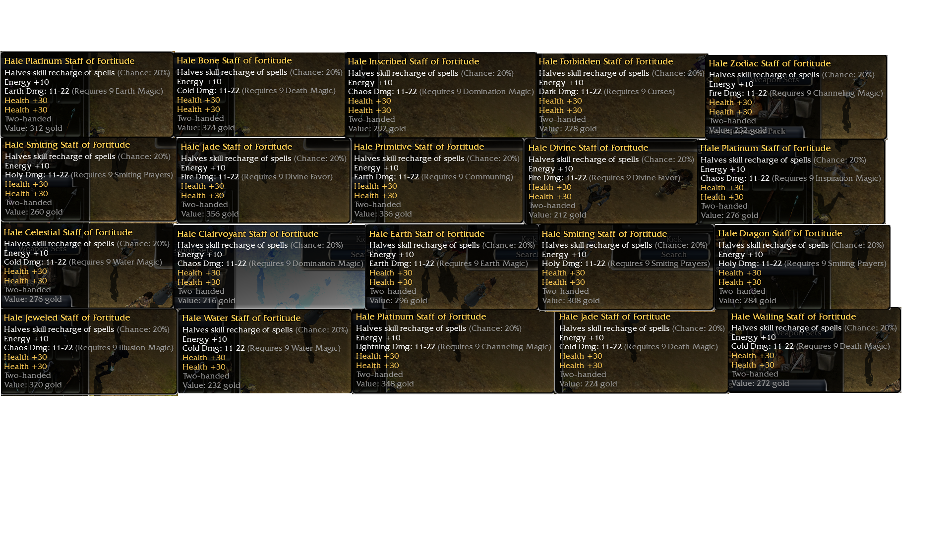 The Channeling Bo Staves with the Fire and Earth damage are cool, not that all the others arent too.