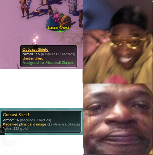 I used to envy dudes standing behind the Xunlai Chests trading day in and day out in LA "WTB / WTS Dome for 100k+xxx ecto". I'd sit about halfway down the hill and admire the unattainable items with a couch pillow covering my lap. Nightfall comes along and then I see it... the most sick nasty of all swords is introduced to the game.... the coveted Elemental Sword. I wanted to be that dude. Elite AF rocking the most sought after sword in the game... standing on the bridge in Kamadan, stroking egos on the hill in LA. Match it with a stupidly difficult to acquire torment shield and black warrior obi. That would be my Magnum Opus. I WILL get one of those as a natty drop and I WILL get black warrior obi armor by tongue punching my way through FOW / UW... and I WILL dig out gems from the depths of DoA to get that non-matching torment shield. Not bought, traded, gifted etc. etc. I stopped playing for a long time.... come out of my hiatus and find out nobody gives a crap about them anymore. But damnit, the love never died.