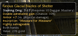 Assassin+5 for rangers/martial weapons users can go /A and use critical agility+way of the master for a +25 armor/33% IAS/18% chance of renewal and 1 energy per hit
