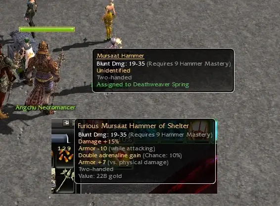 While farming for Nic gift mats, these two dropped. I have a real soft spot for low level gold weapons.