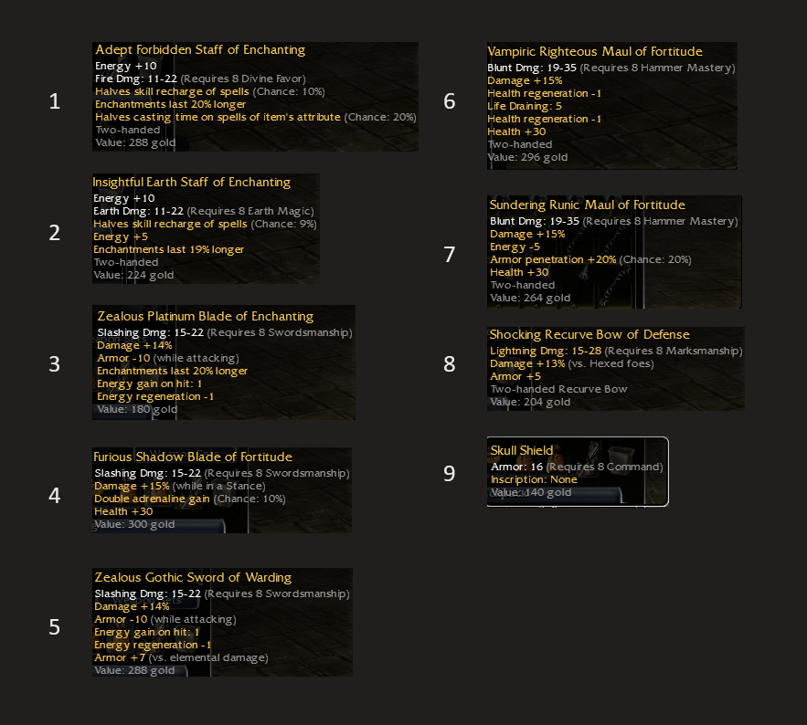 Q8 Staffs / Swords / Hammers / Bow / Shield