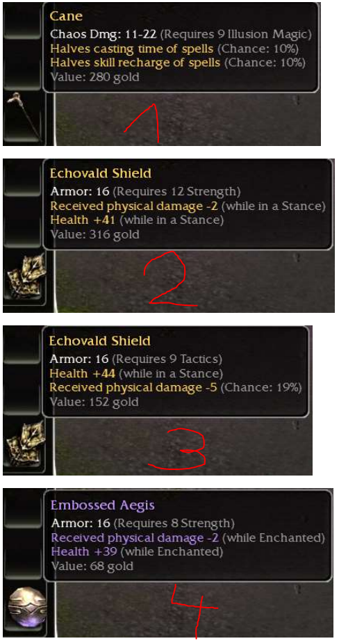 3) Echovald Shield | req9 Tac | +44 (Stance)/-5(19%) | OS