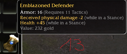 13) Emblazoned Defender | req11 Tac | -2/+45 (Stance) | OS