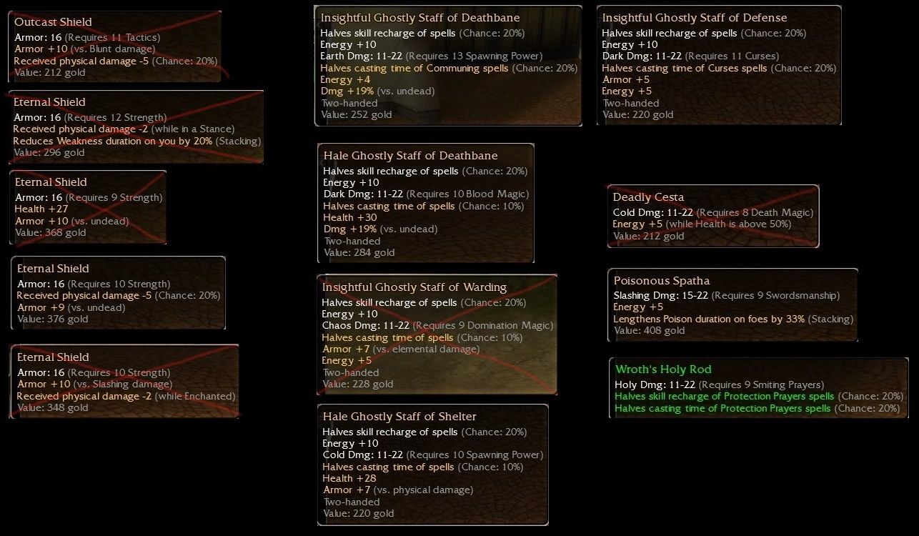 Outcast Shieldq11 tac +10 Blunt/-5 20%SOLD in-gameEternal Shield q9 +27/+10 UndeadSOLD c/o: 1a PyroLobster- Eternal Shield q10 -5 20%/+9 Undead c/o: b/o: