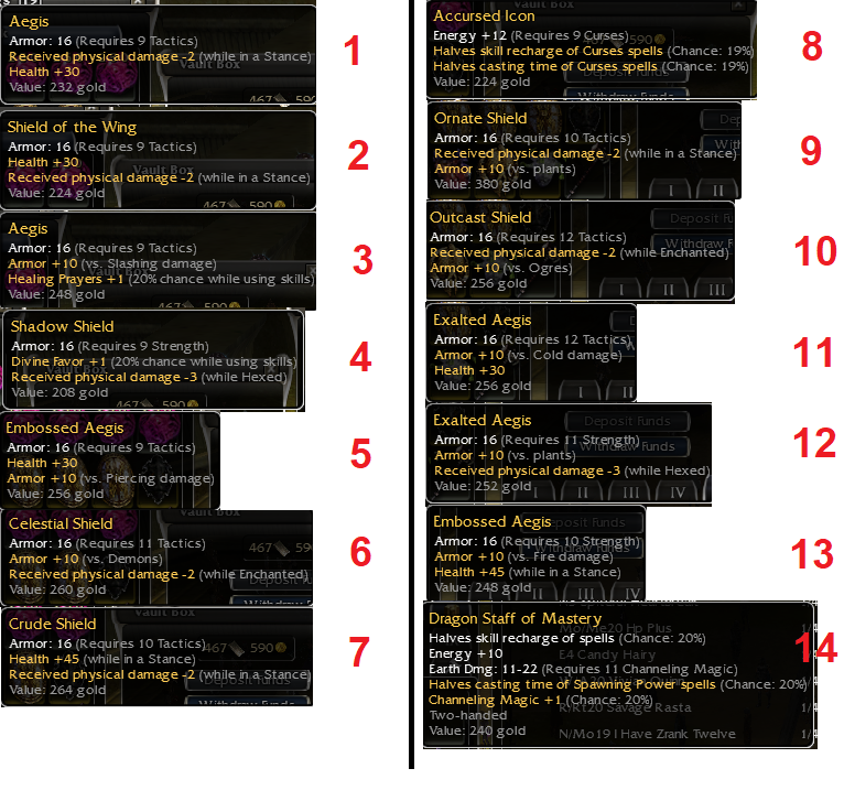 Changed the title of the thread from “Shields (OS, demon, +attribute etc) and Staves (20/20) plus a couple misc things (+5e, mixed wands etc)” to “Shields (OS, demon, +attribute etc) and Staves (20/20) [mixed wand inside]”.