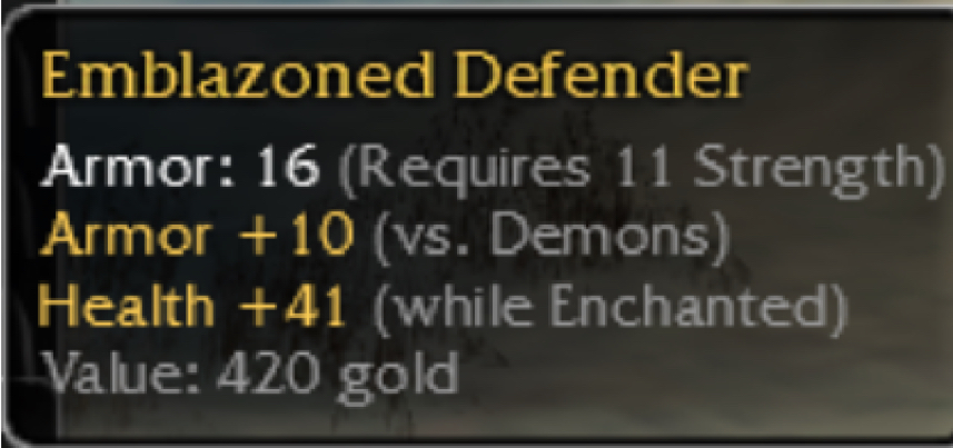 - OS or insc items with a 420 gold value. Will check out any max dmg/max mod weapons, shield, offhand, etc. Dream item is a q9 echovald +10vs fire or plants and a max secondary mod.
