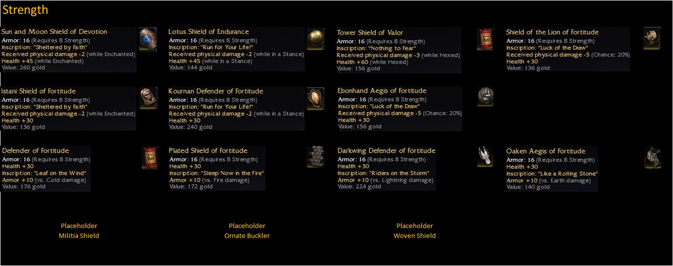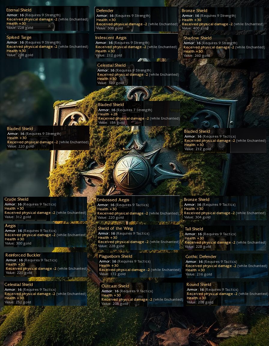 OS Shields with -2 (while Enchanted) / +30 hp