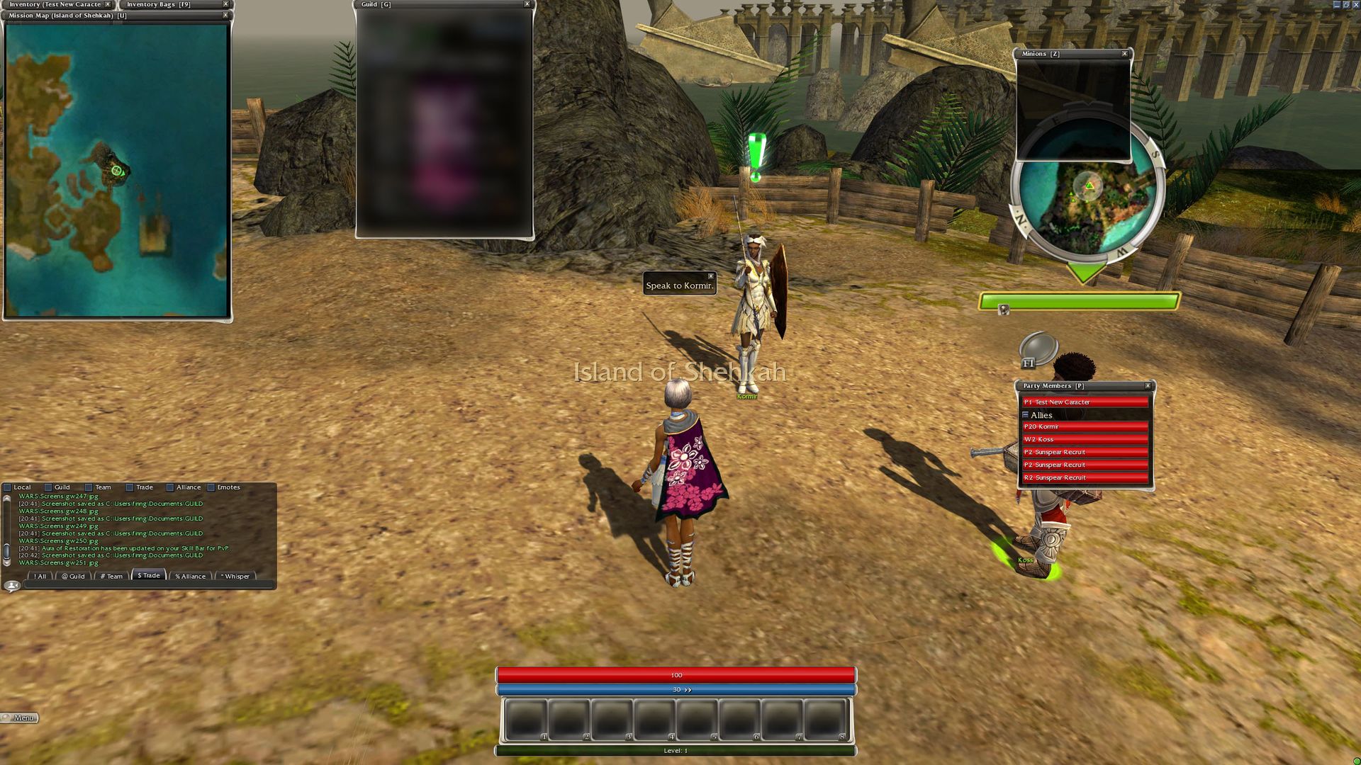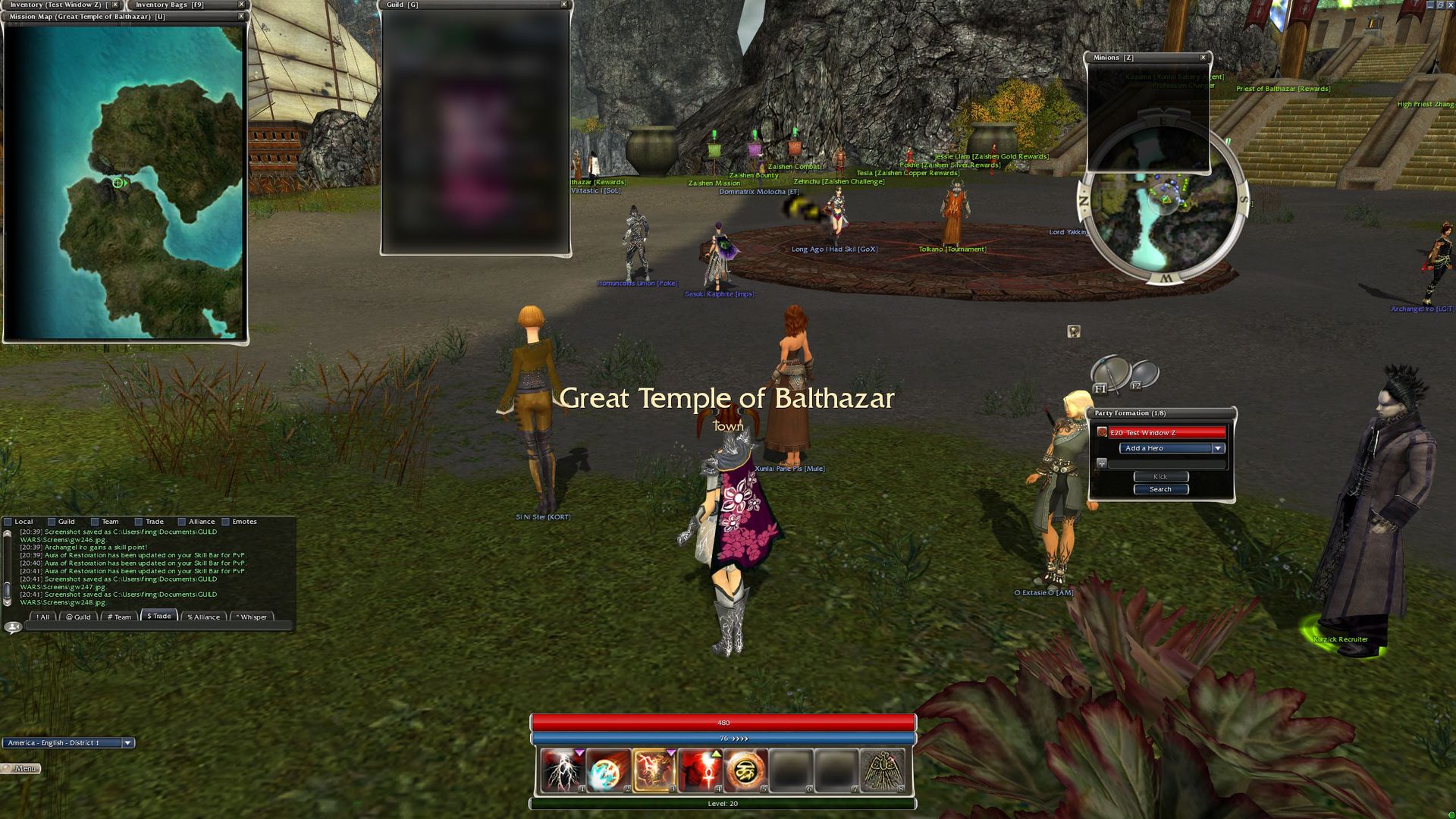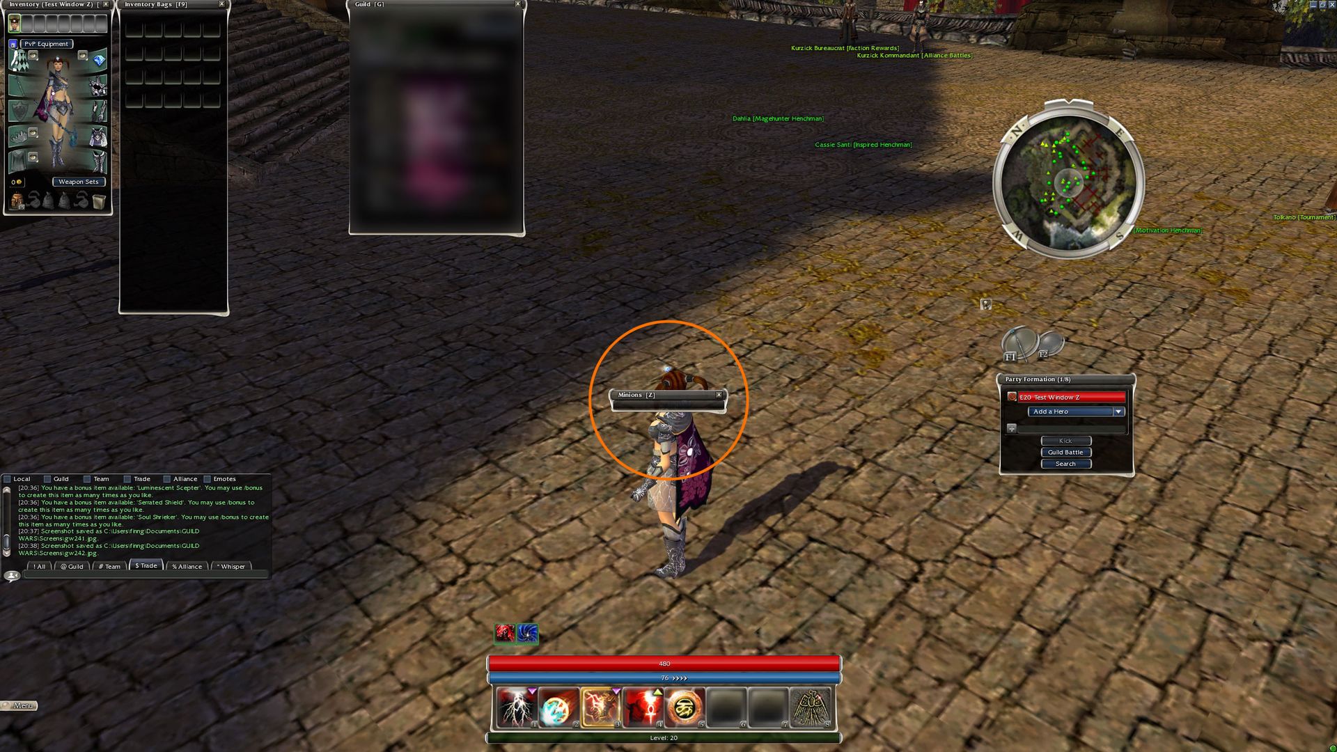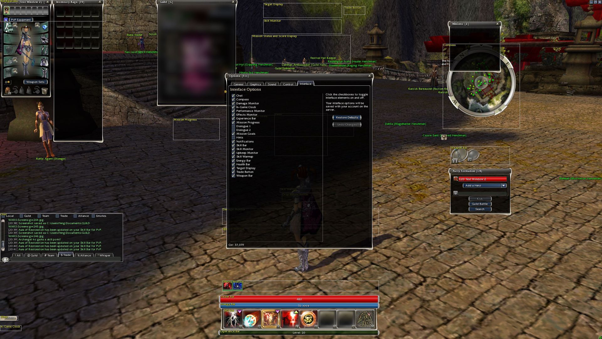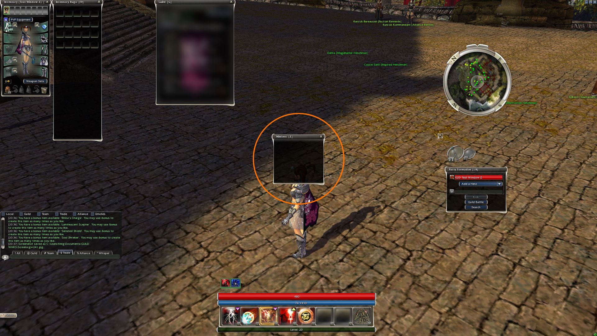 3. Now wherever you are, with panel minions list and F11 window: interface open, travel, teleport through the guild hall or through any portal. It doesn't matter if you're in an outpost zone or not, it won't matter, you just need a map to load.