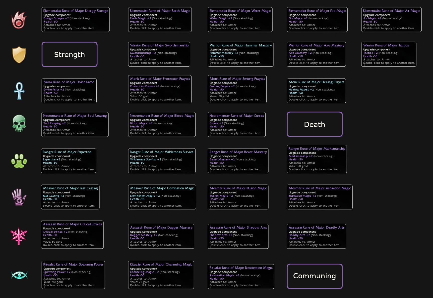Almost complete collection of +2/-50hp runes :