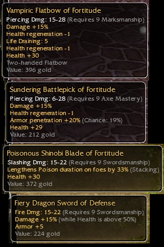 Dual Vamp Battlepick Q9 c/oClean Shinobi Blade Q9 sold for 5eFiery Dragon Sword Q9 15^50 sold ingame