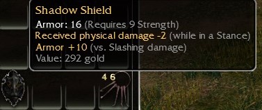 January 5, 2021 at 11:24 PM #1 Hi All,I got a Q9 Strength Shadow Shield +10 armor vs slashing, -2 while in stance.Happy bidding