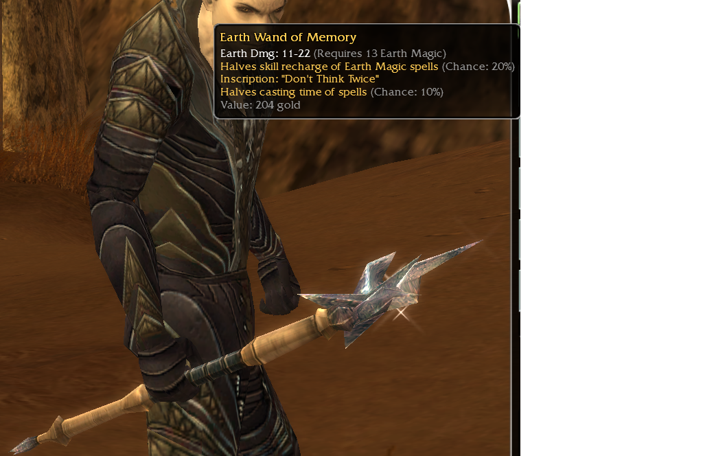 Earth Wand of memory req 13 EM Halfs casting time of earth spells 20% Inscrip Halfs time of spell 10%