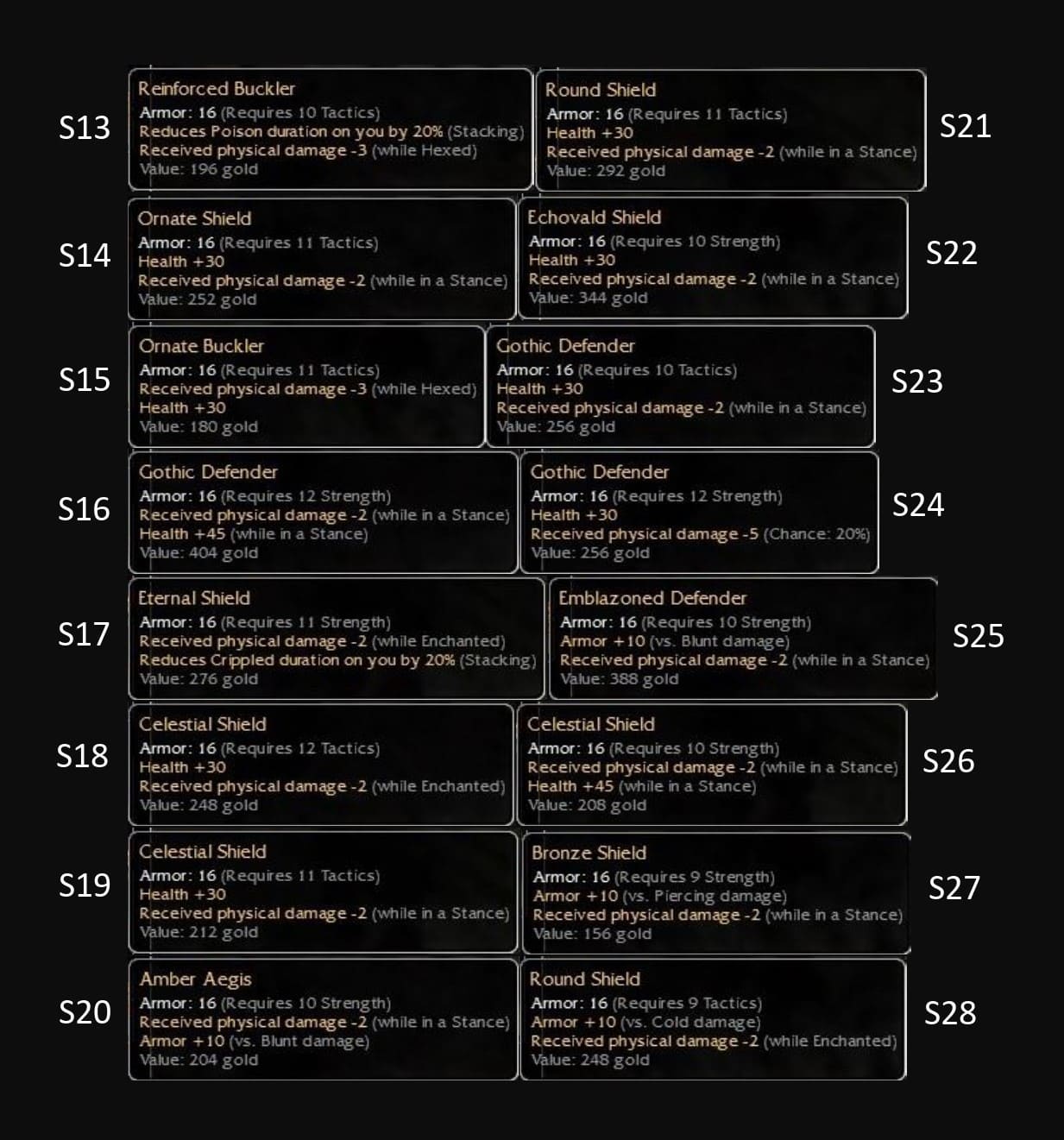 OS shields & caster items for sale (added new)