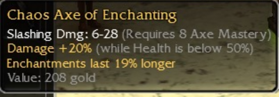 Q8 OS Chaos Axe 20under50 Danisth December 13, 2025 at 3:19 AM Will probably let it go for cheap, don’t have any use for it and just want to fund a couple Armor sets.b/o 200a