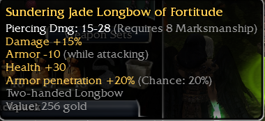 [Close]WTS Q8 OS Jade Longbow dmg 15% armor-10 while attacking, health +30, Armor pen +20 Carona Crush December 17, 2025 at 1:29 AM Looking to sell this OS q8 bow!