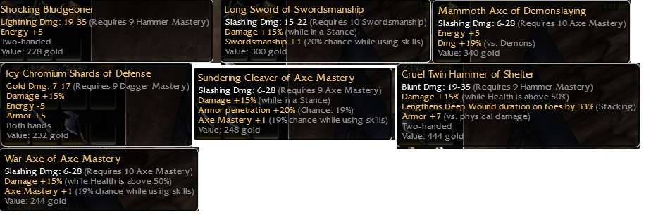 PC some random weapons Secretly December 30, 2025 at 9:02 PM Hi! Im new to guild wars and have done a little bit of research but its pretty hard to find definitive answers on what items are actually worth selling/keeping. Any help is greatly appreciated!