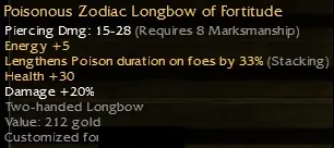 q8 +5energy (customized) zodiac bow | presearing items zybybner145 January 3, 2026 at 3:10 PM Hi,I would appreciate some PCs on the following items# 1 - Zodiac BowAssuming its not worth anything customized. What would it be worth uncustomized?# 2 - Presearing Items Thanks in advance and have a nice day.