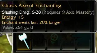 q9 OS Chaos Axe +5e Enchantment 20% Avelon Reforged January 7, 2026 at 11:54 AM Hi,I would like to know the value of this Axe.Best regards / Ave