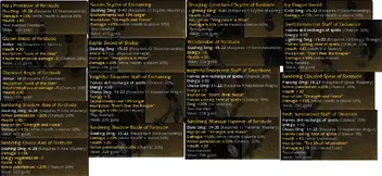 From what you've listed here, spiriteater, inallay's hornbow, the scar eater have a prenerf version. Wroth's holy rod and hukhrah's staff do as well, but the ones shown are postnerf. None of the others do or should, but I'd like to check out Ahvha's in game in the off chance something is different about it, assuming you've had it for quite some time, and would be very interested in inallay's if prenerf.