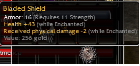 OS bladed shield Q11 STR, +43 life/ench, -2dmg/ench, worth something or NPC?