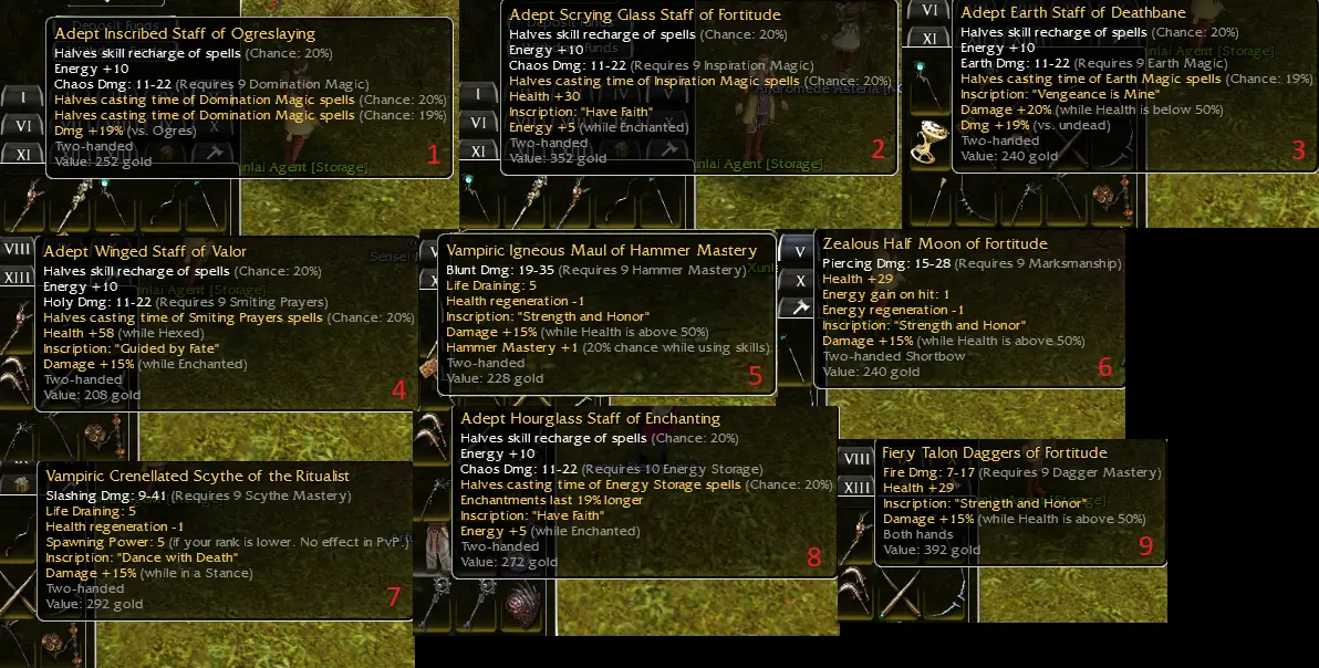 5 x Bo Staff (q9 illusion, q10 fire, 2x q10 channel, q10 communing)