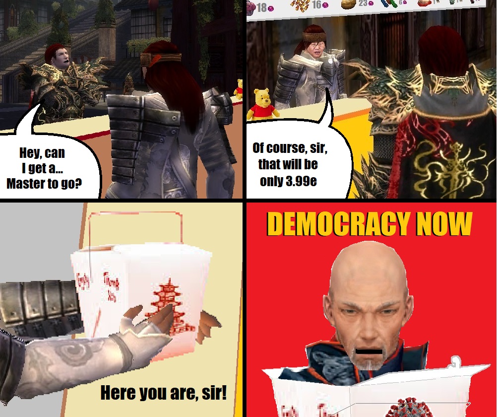 Because GW2 was a big graphical, gameplay, and content update from GW1, but Arenanet barely supports their old game. RuneScape 3 was also a big graphical, gameplay, and content update, but they went back and supported OSRS and just had a $50k tournament--the game is played in a browser with very simple graphics. People have told me that it's the fault of GW's community that GW1 is in maintenance mode right now, and I can understand that.