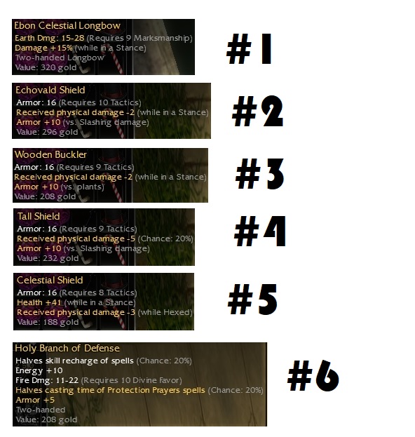 i would merch 1 and 6 and for 2,3,4 it depends: they are not good but not that shabby either. It you are willing to spend some time finding a buyer you can try to sell them. Maybe 20-40e range (max) but hard to sell. 5 is sad and i hightly recommend sell it in kamadan over this platform.. maybe you can get 1-2a just cause its q8 but most ''looks good but is garbage'' sell pretty good in kamadan