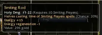 | Smiting Rod | 10 smiting prayers | hct 20% smiting prayers spells, energy +15 /-1 | ![]() |