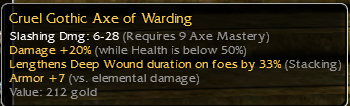 2 gothic axeq9, 20%dmg when hp over 50%C/O