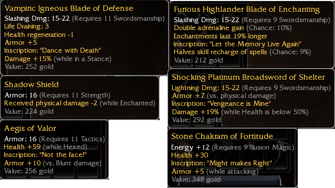 I found some q9 gold insc items, and was wondering if any of them are worth anything.