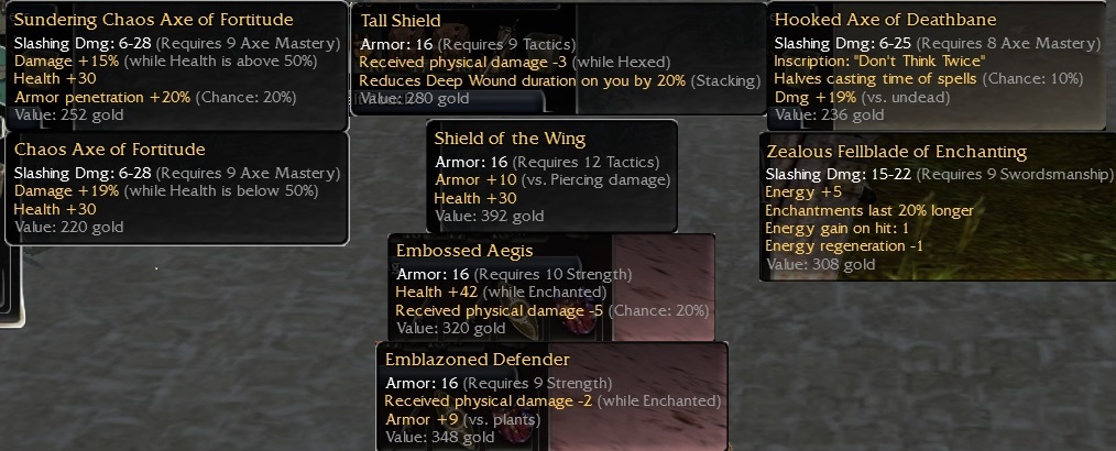 Still slowly getting into the hang of knowing what's worth something and what's not and would love to know which of these is merchant food. Note that the axe isn't max damage so I'm assuming it's not worth anything (because it should be a minimum of one-off in damage)? And the Chaos axe prices are all over the place so I added that just in case. Thank you to whoever helps
