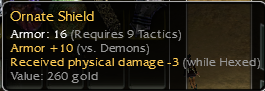 im looking for some offers on this old amber aegis ive had stored in my chest for 10+ years now, its a q8 strength , +9 vs lightning , +42 while enchanted . i also have a q9 tactics Echovald Aegis +9 vs demons, -2 while stanced.