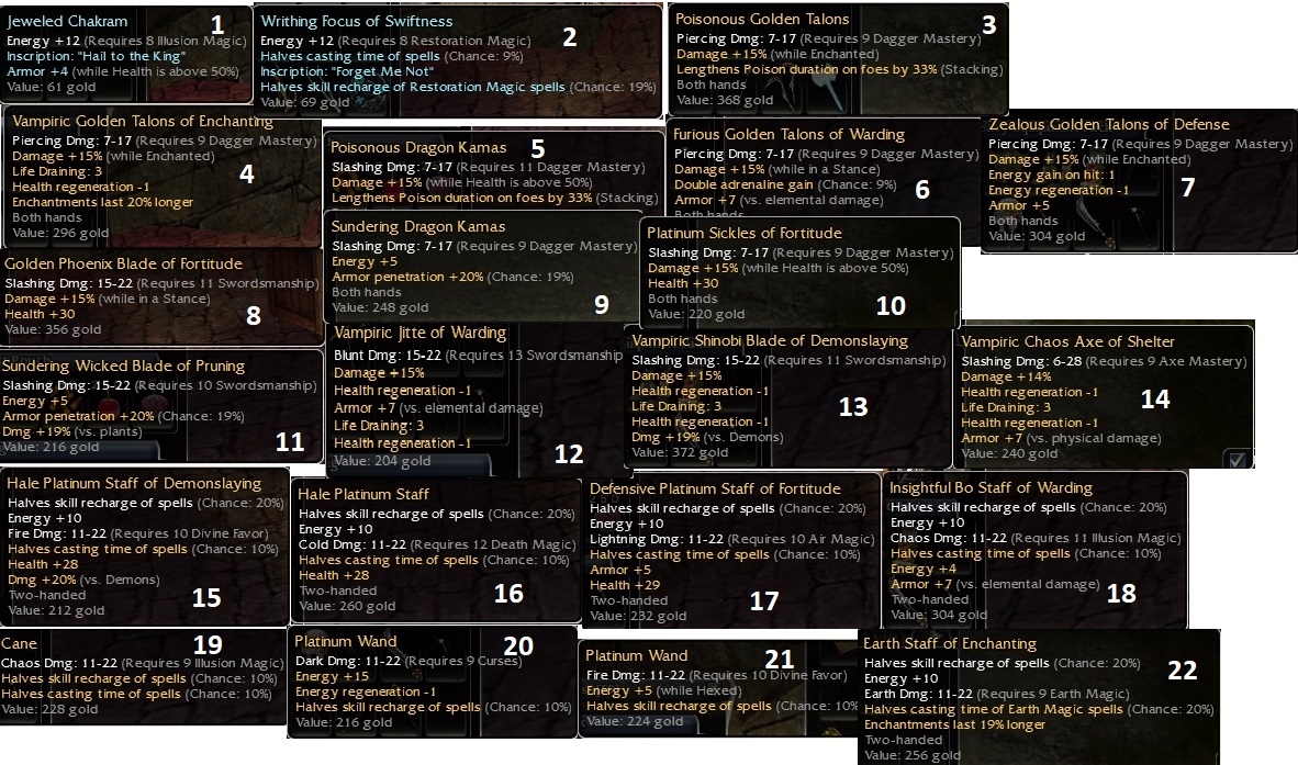 - 1.2 Bo Staff, q11 Smit, 20% HCT Smithing - 5e