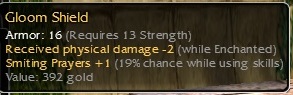 - q13 gloom shield -2we +1 smiting 19% co: 5e