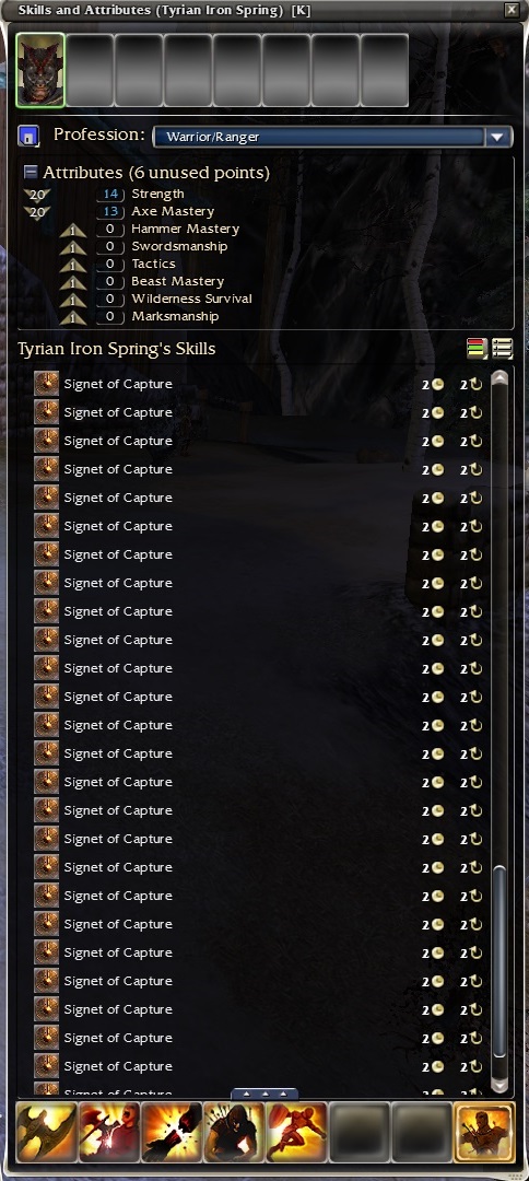 Warrior is good for a normal mode prophecies playthrough, it is trash in hardmode. You get hard countered as a melee while still having to somehow carry the team. I can't imagine trying to 6 man deldrimor bowl as a warrior. Did it with necromancer years ago and it took me like 1.5 hrs. Eastern Frontier is another nasty one as 4 man against patrolling groups with 2 grawl healers. Ended up doing it as mesmer with signet of midnight on my bar for some reason I cannot remember why.