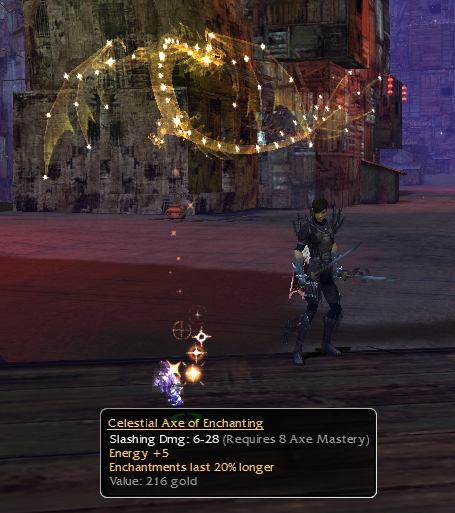 Spent a portion of the day chest running due to the double luck bonus. Started out in Grenths footprint and wasn't very lucky. Went through 100 lockpicks and my best drops were a perfect q13 fellblade and q13 summit axe, which I accidentally merched while merching my inventory (sorry Captain Krompdown) LOL :x