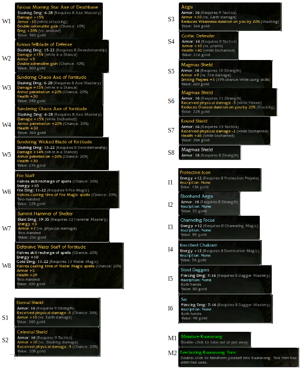- Greens were coveted, kanaxai axe was going for 100k + xx ecto.