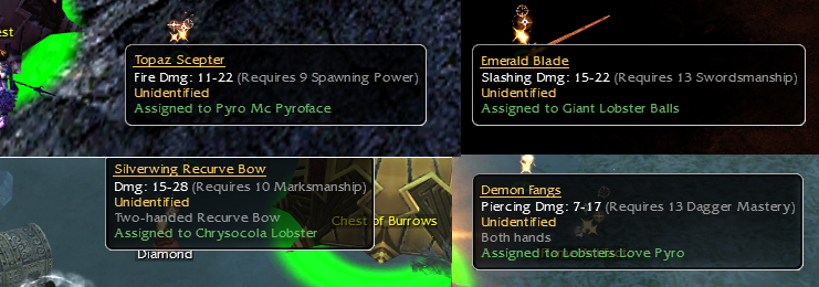 Considering I regularly solo / duo dungeons with 6-7 alts its a pretty decent comparison. Shame I don't have exact records but that aside that amount of drops these new accounts got in so few attempts just doesn't happen to me and I'm expecting when I repeat this test again it will show that. Predicting 4th 5th 6th chest opens will yield significantly less drops.Thought this was somewhat interesting information, do with it as you like. My advise = If you got some fresh accounts go open dungeon chests a couple times, seems lucrative. At some point I will do other dungeons on these 6 and repeat dungeons again for another 3 opens, see what comes. cba to post them all but here is some of the drops. PS. I definitely got screwed on reqs