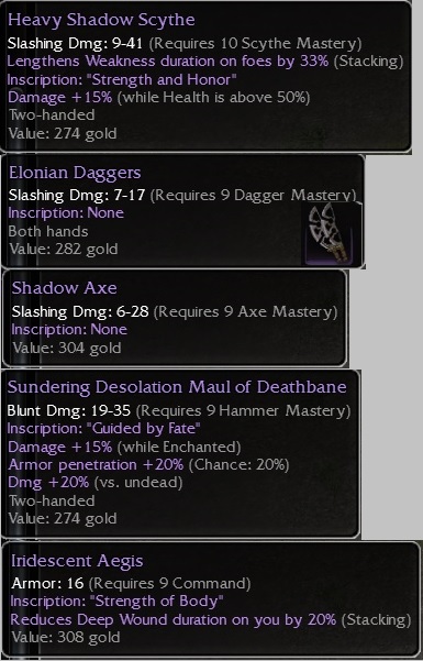 EDIT: Since you mentioned anything above it is pre-nerf or NF treasures..While i could agree with the least i dont understand of what you meant with prenerf with all in all insc items...The *big* nerf happened before NF was released, inscripable items at the time of nerf did not exist, and many confuse prenerf max damage possibilities that dropped to those that drop inscribable for example...and about those, the level community and traders are at, stating that an inscribable q8 Daggers for example at 7-16 arent max, are delusional. Those weapons came to existence with NF, and have nothing to do with the pre-nerf, nerf (imo). Take that point of damage less in exchange for ability to change the inscription to what u want, but dont mistake the era of prenerf OS to NF/EotN if u would