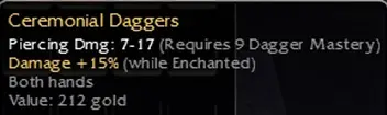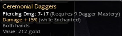 - Zodiac Daggers q10 15^stance,10% furious,armor +5