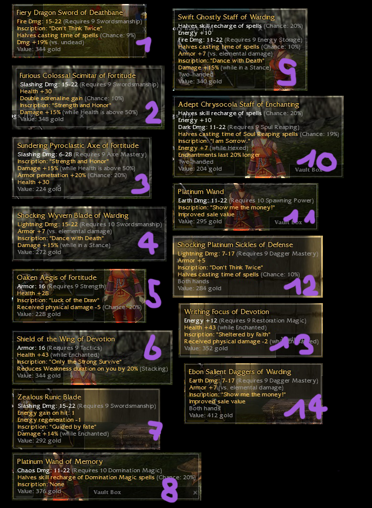 just spent some time cleaning up my chars and chest and like to check if some OS weapons I found have any value.