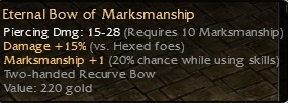 just asking for the PC on what I believe is a prenerf eternal bow I found on my hero (+15% vs hexed foes is inherent to the bow, other mod can be chnaged) and a Q6 tactic shield I found on Koss