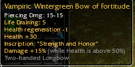 Finally, I have a Vampiric Wintergreen Bow of Fortitude. If this is something you want, make me an offer.