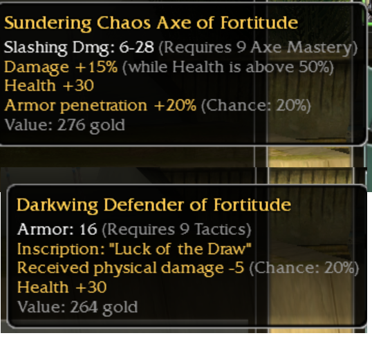 - Chaos Axe (os) : Q9: 15^50, 20/20 +30HP