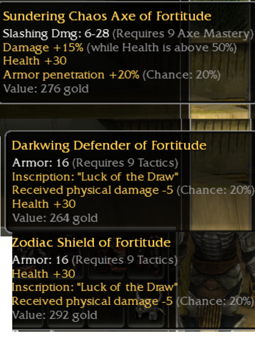 - Zodiac Shield (Insc) : Q9: -5 (20%) + 30hp