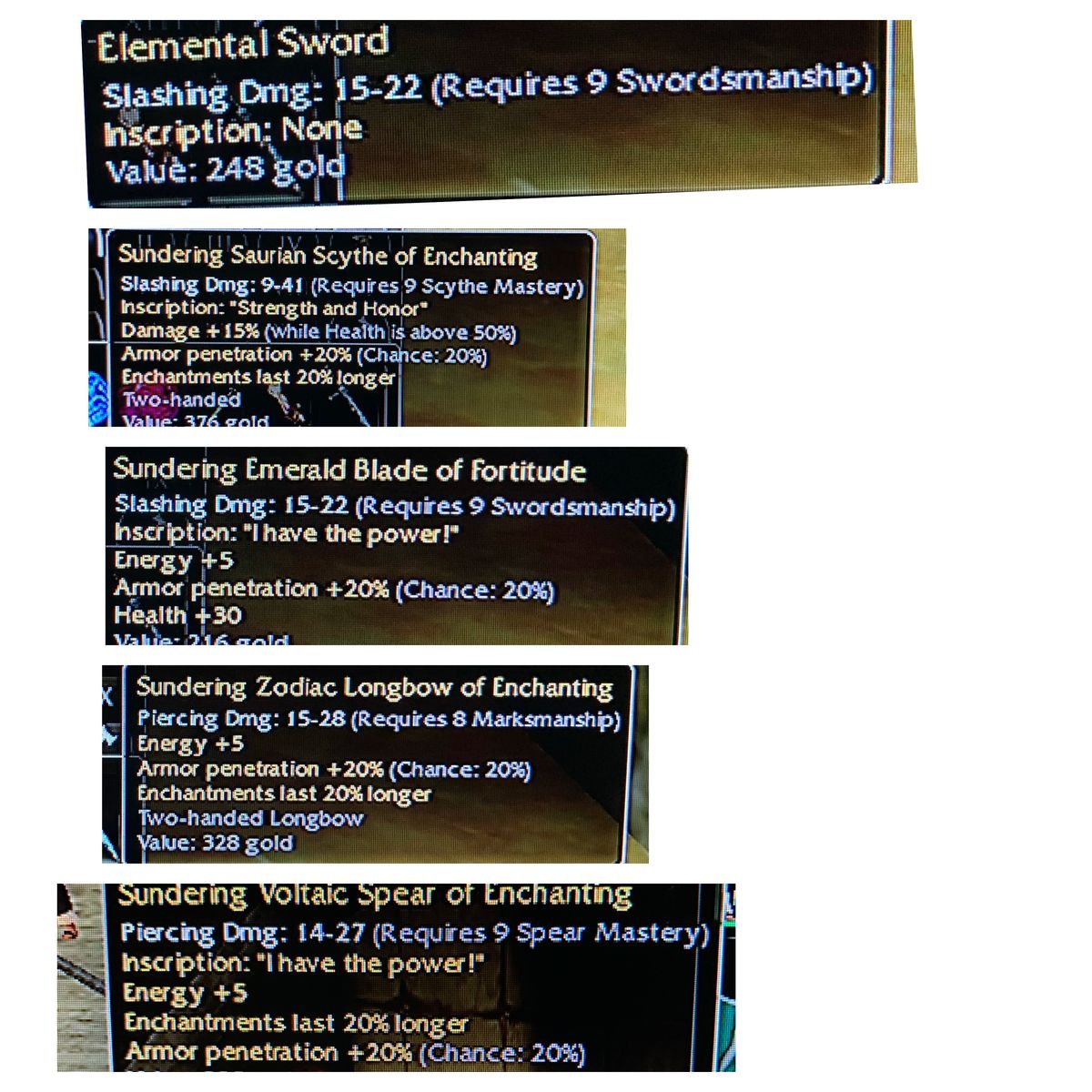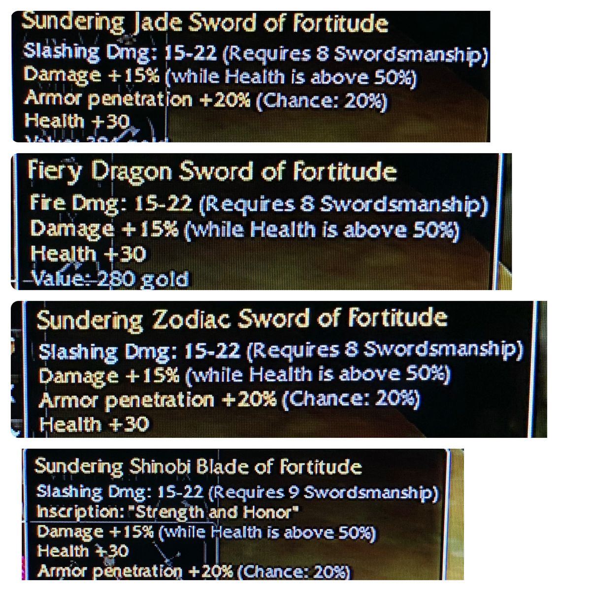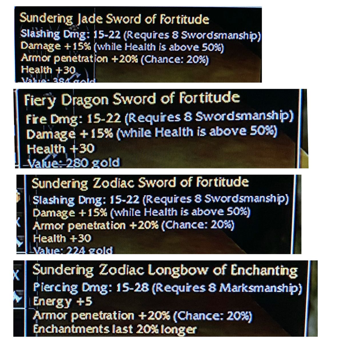 Purely is top bid for both Zodiac Sword and Longbow: 70a longbow and 55a sword.