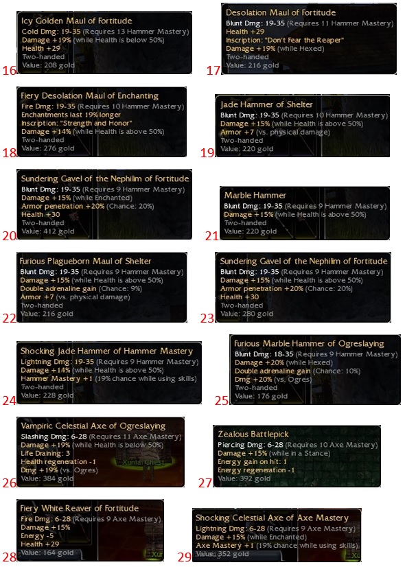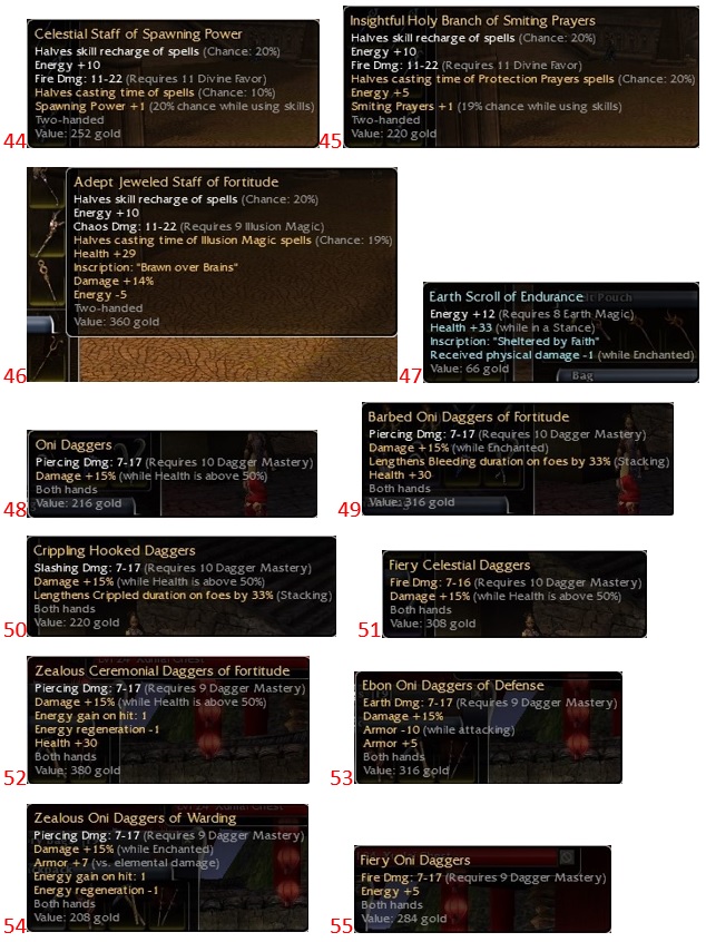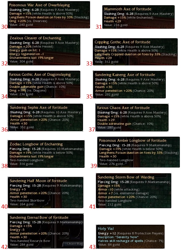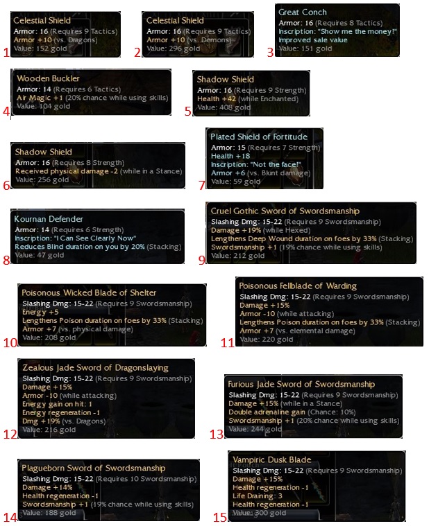 Below are numbered images of mostly old school items, some lower req items for which I'd really appreciate some price checks before putting some or all of the better ones up for auction. I apologize in advance for being mostly ignorant of values, so I'm sure there will be a number of merch items in here. #46 is a twin serpent head if that makes any difference, and thank you in advance for any help!