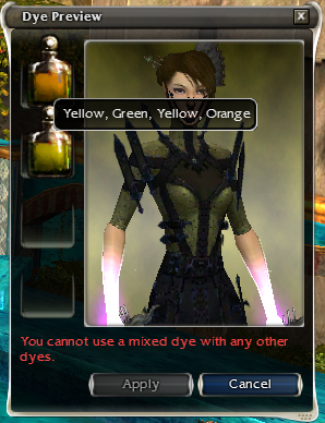 Dye mixes can be checked by using the Dye Preview on a piece of armor. For safety, use a normal dye first to open the dye-mixer. Once this is open you can drag and drop the mixed dye to see the color. (See attachment)