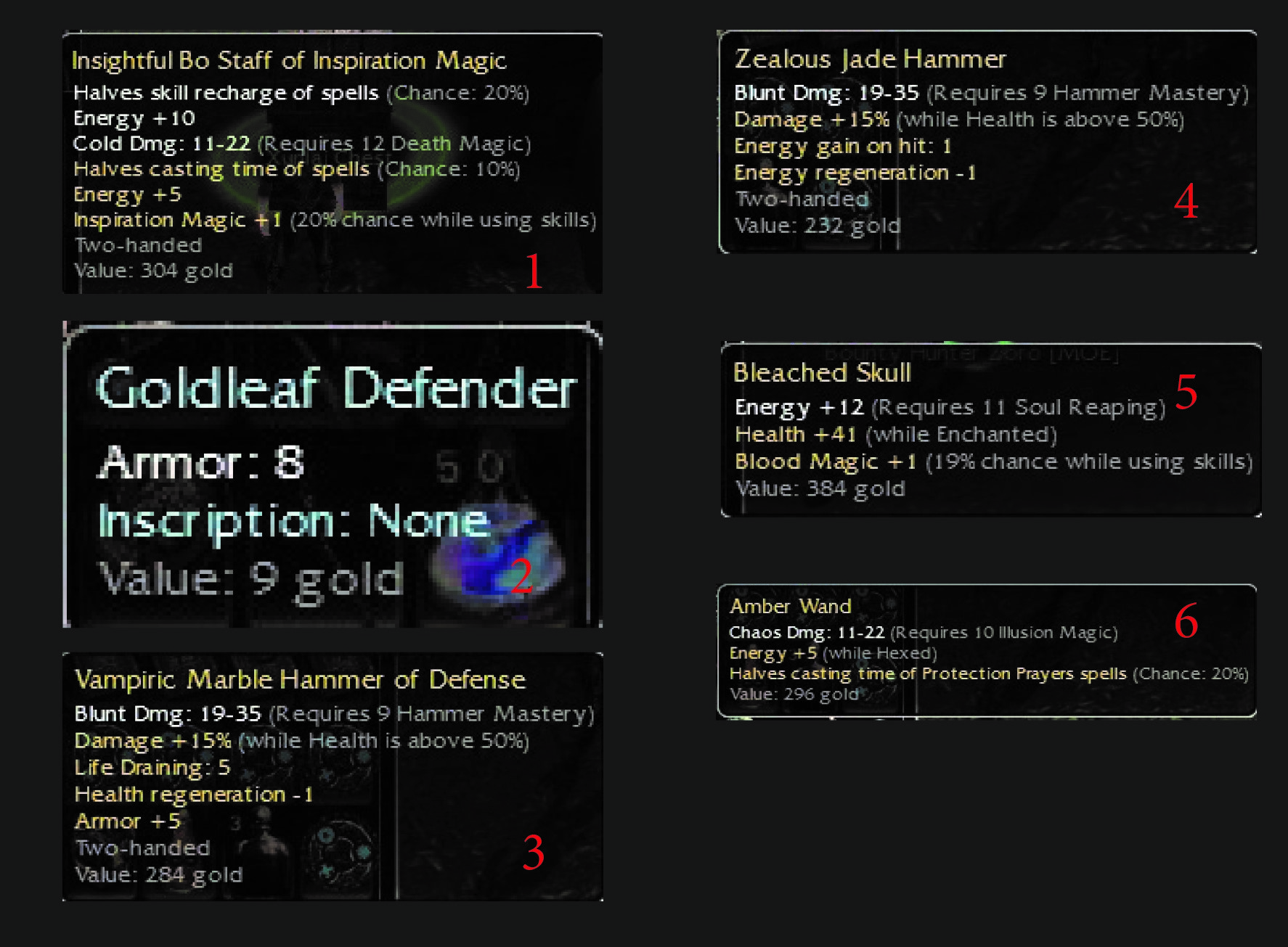 Edit 2: I was going through some old guru posts, and my memory isn’t perfect: the dusk blade was req8 15/50, not 5nrg. Same for the rest of that guy’s collection. His name was Sirenia X.